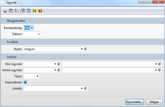 A lista segítségével a párbeszédablak beállításainak megfelelően kerülnek megjelenítésre az ügynökök. Törzslista.