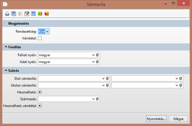 A lista segítségével a vámtarifa bevitelben felvett adatokat listázhatjuk.
