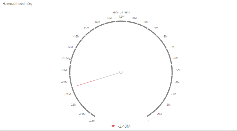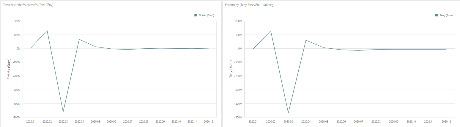 A műszerfalon időszakos (jelenleg havi) bontásban megtekinthető a kiválasztott főkönyvi számok bontásában a terv-tény összehasonlítás.