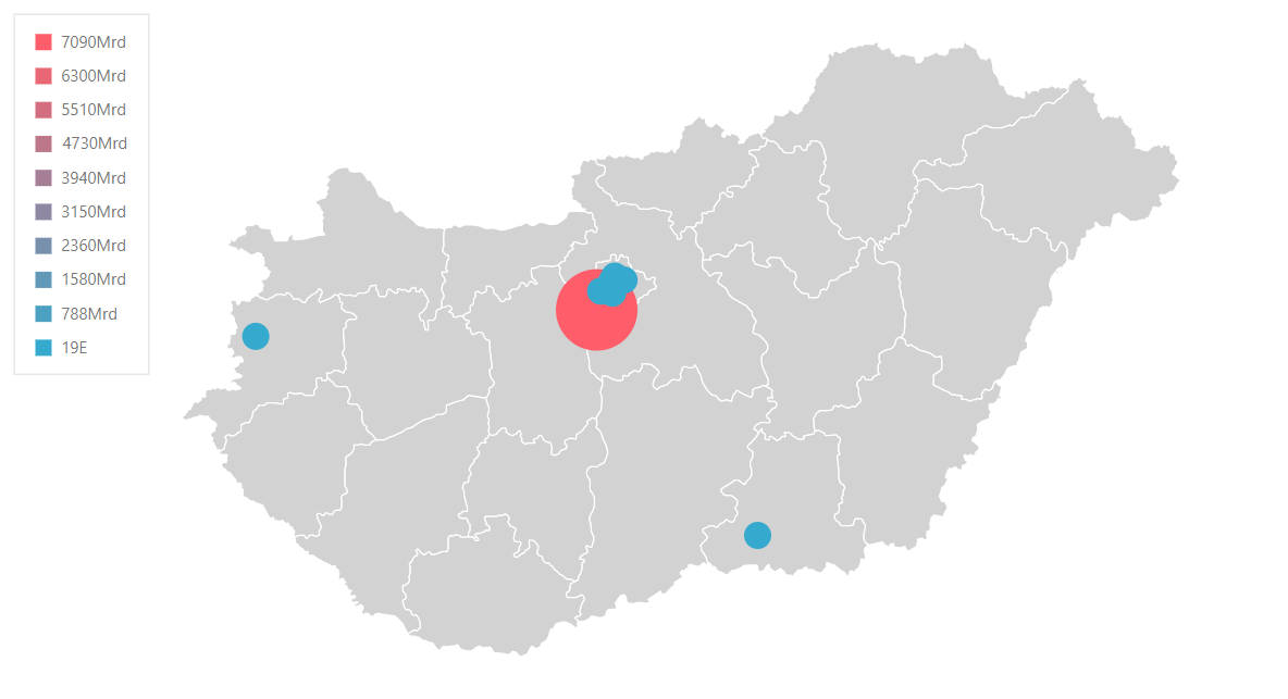 Megtekinthetjük a forgalomra vonatkozó adatokat területi megosztás szerint. Ez segíti az elemzéseket a partnerek földrajzi elhelyezkedését mutatva a térképen.
