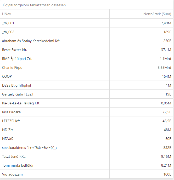 Az ügyfélforgalom bemutatásával átlátható képet kap a vezetés és a kereskedelem is arról, hogy adott időszakban melyik ügyfelekkel milyen forgalmat bonyolított a társaság. Ez a kimutatás segít annak megismerésére, hogy egy adott időszak stratégiájával milyen ügyfélkörben ért el a társaság nagyobb eredményt.