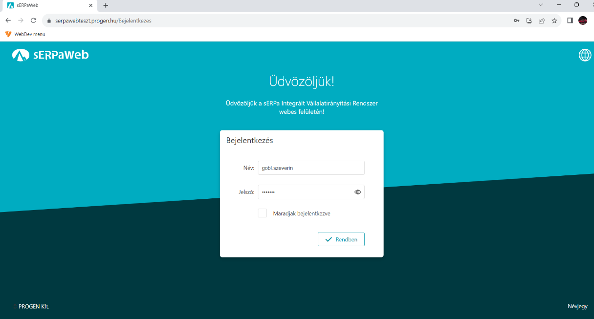 Telepítést követően erre a felületre kell, hogy a böngészőben érkezzetek: