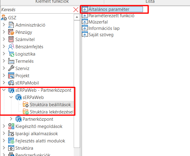 sERPaWeb - Partnerközpont \ sERPaWeb \ Struktúra beállítások \ Általános paraméter