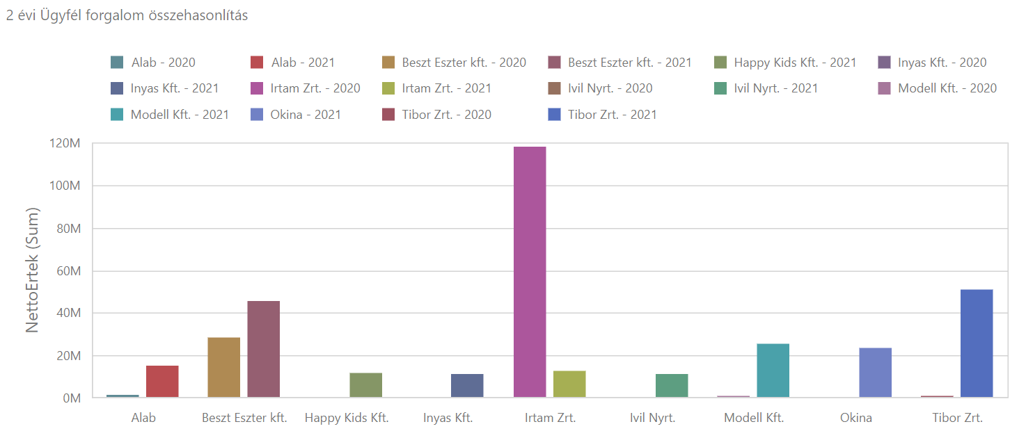 Fa Nézet Lehetővé teszi a műszerfal értékeinek szűrést előre meghatározott dimenziók szerint, legördülő listában. |