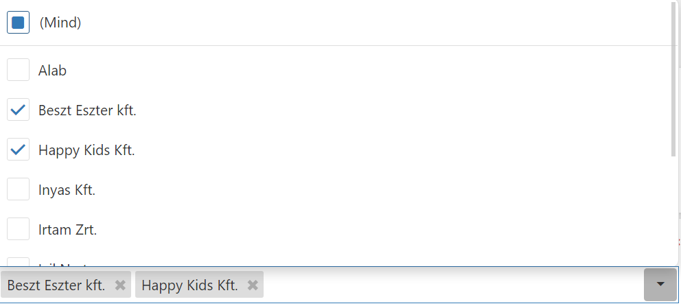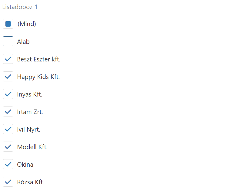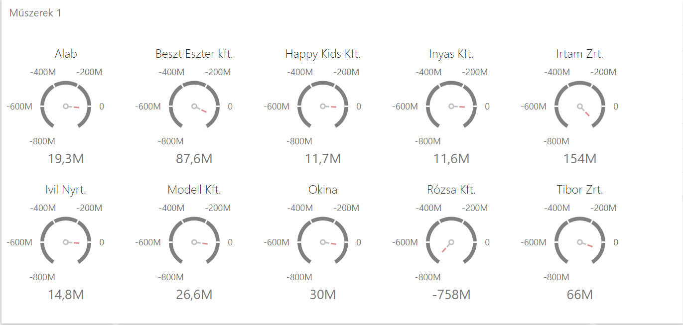 Listadoboz Lehetővé teszi a műszerfalon megjelenő értékek szűrését a listából választott értékkel. |