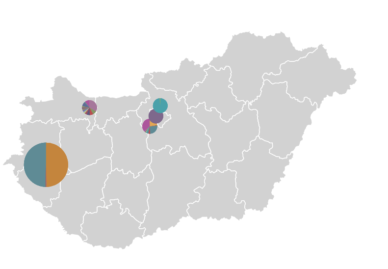 Kördiagramtérkép Földrajzi koordináták segítségével jeleníti meg a kördiagramokat a térképen. |