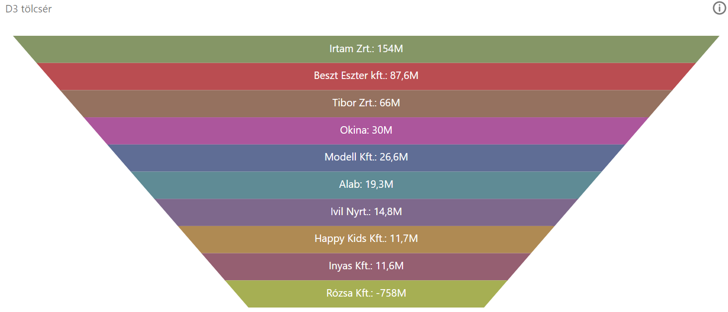 D3 tölcsérrel lehetőségünk van tölcsérben megjeleníteni Műszerfalon az adatokat.