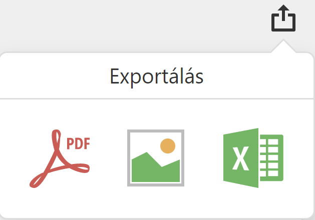 A műszerfal egyes elemeinek exportálásához kattintson a műszerfal elem feliratában található gombra, és válassza ki, hogy milyen formátumban szeretné menteni a műszerfal elemet.