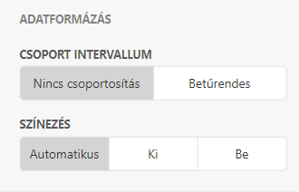 AdatformázásCsoport intervallumának meghatározása • Lehetőség van beállítani, hogy a szöveget tartalmazó adat kezdőbetűje jelenjen csak meg (Betűrendes)