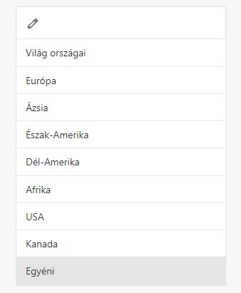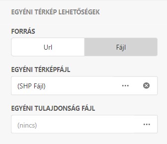 Térkép kiválasztása Ebben a pontban választható ki a kívánt térkép. Saját térkép feltöltésére az 'Egyéni' gomb kiválasztásával van lehetőség. Ebben az esetben választható az Internetre feltöltött térkép (URL) vagy a számítógépünkön található térkép (Fájl). Az egyéni tulajdonság fájl kiválasztásával egyéni térkép (pl.: Magyarország térképe) tölthető fel. Magyarország SHP adata (térképe) innen érhető el: https://gadm.org/download_country_v3.html (HUN_adm1.shp megyevonalakkal)