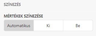 SzínezésMértékek színezése •'Automatikus' - A műszerfal kezeli az értékek színezését. •'BE' - Manuálisan beállíthatóak a színek. Részletek a színezésnél. •'KI' - Nincsenek eltérő színek a grafikonon. |