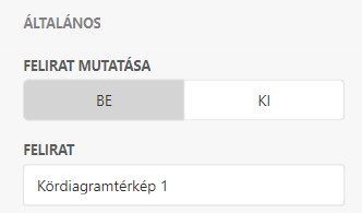 ÁltalánosFelirat mutatása•'BE' - A diagram fejléce fölött megjelenik egy tetszőlegesen megadott cím. •'KI' - A diagram felett cím nem látható. FeliratA Kördiagramtérképnek megadott tetszőleges cím, amely a fejléc felett jelenik meg. |