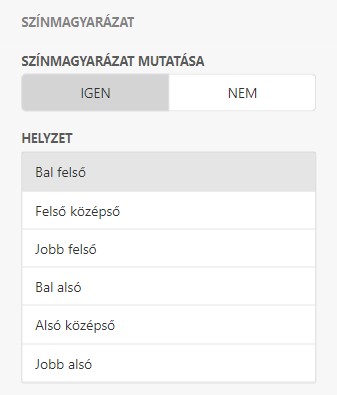SzínsémaA Kördiagramtérképen használt színek jelennek meg. A jobb oldalon található ceruza ikonokra kattintva módosíthatunk a színeken. |