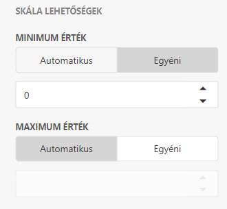 Skála lehetőségekMinimum értékekBeállíthatjuk a Műszeren a minimum értéket, ami lehet: Automatikus - A Műszer automatikusan megadja a minimum értéket.Egyéni - Mi adhatunk meg minimum értéket.Beállíthatjuk a Műszeren a minimum értéket is, ami lehet: Automatikus - A Műszer automatikusan megadja a minimum értéket.Egyéni - Mi adhatunk meg minimum értéket. |