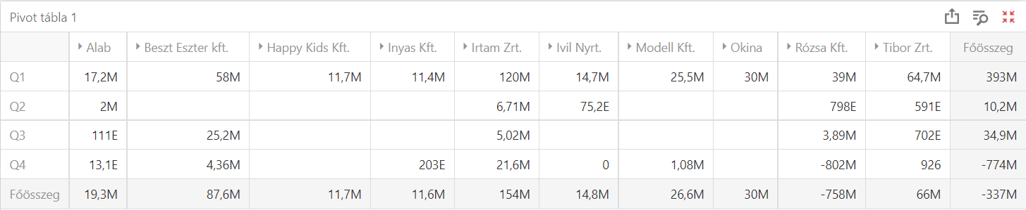 Ebben a részben bemutatjuk, hogyan lehet különböző Pivot táblákat létrehozni és ezekhez adatokat kötni a Műszerfalon.