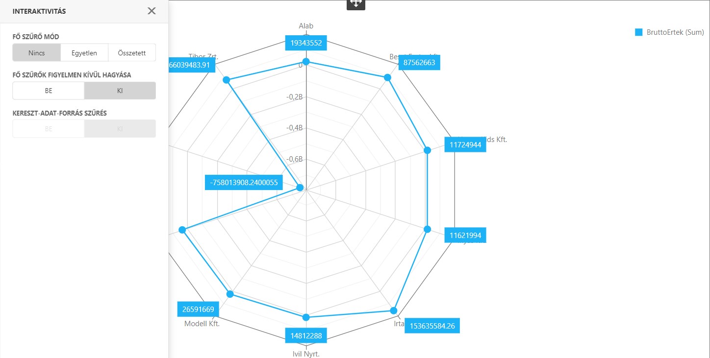 Fő szűrők figyelmen kívül hagyása'BE'Ha egy másik diagramon Fő szűrő móddal végrehajtott szűrés történik, akkor a Sarki diagram adatai a szűrés szerint frissülnek. 'KI'Letilthatjuk a mester szűrést. A Sarki diagramra nem hatnak más diagramok szűrései. |