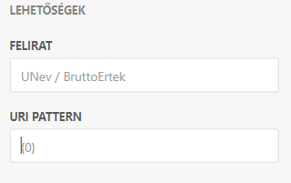 LehetőségekFelirat • Megváltoztathatjuk az oszlop nevét a táblázatban lévő megjelenéshez. •Uri Pattern •{0} kulcsszó (vagy makró) ki lesz cserélve az URL oszlopban található értékre. Ennek használatával előtagot és utótagot adhatunk az elérési útvonalaknak. •pl. www.progen.hu/{0} esetén www.progen.hu/(URL oszlop értéke) lesz a hivatkozásból. |