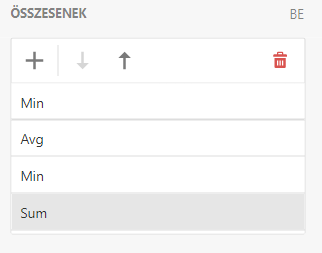 •'Min': Minimum •'Max': Maximum •'Avg': Átlag •'Sum': Összeg •'Count': Darabszám |