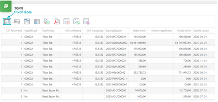 Megjelenítés táblázatos nézetbenA gombra kattintva pivot nézetből táblázatos nézetre váltunk. |