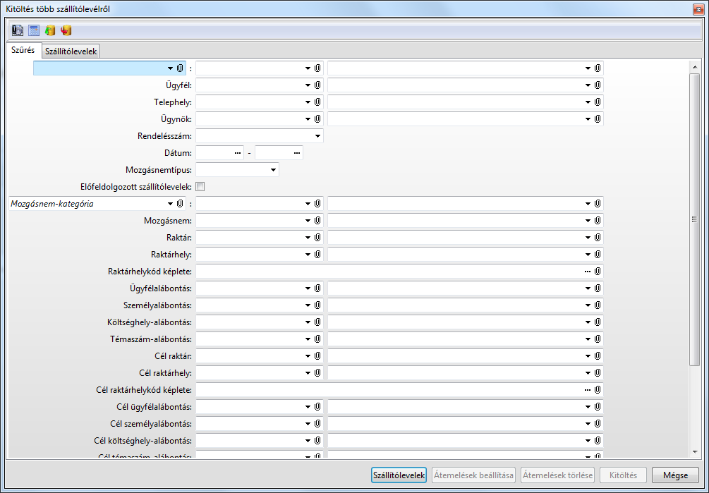 Ha kiválaszt egy rendelésszámot, akkor csak azok a szállítólevelek jelenjenek meg, amelyekre hivatkozik a rendelés valamelyik válasz tétele. (A több szűréssel ÉS kapcsolatba van) |