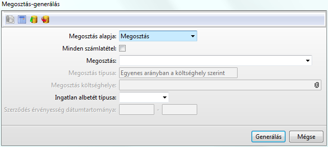 Az tételhez vagy tételekhez megosztást generál a párbeszédablak beállításai szerint.