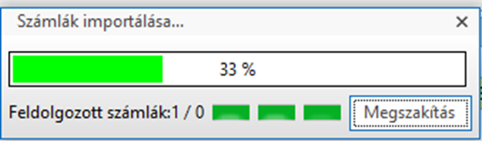 Számla generáláskor megjelenik a Számlák importálása... animált képernyő, ahol nyomonkövethető a számlák feldolgozottságának százalékos mértéke.