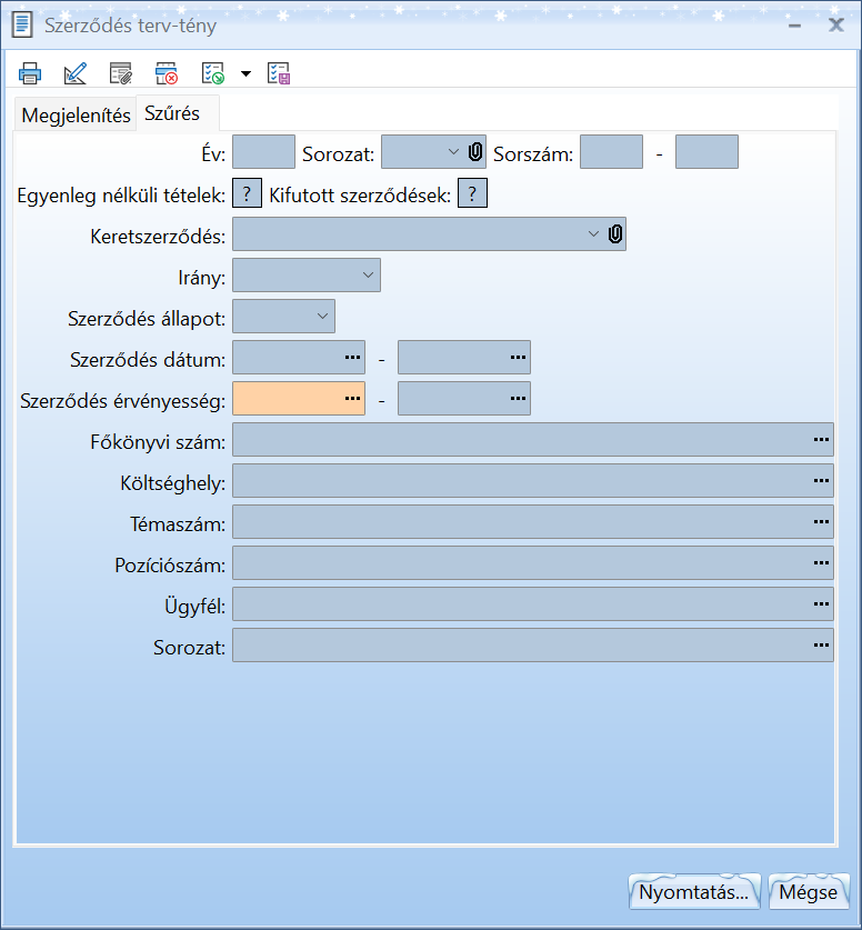 Funkció elérése menüszerkesztéskor: Szerződés-nyilvántartás / Szerződés terv-tény