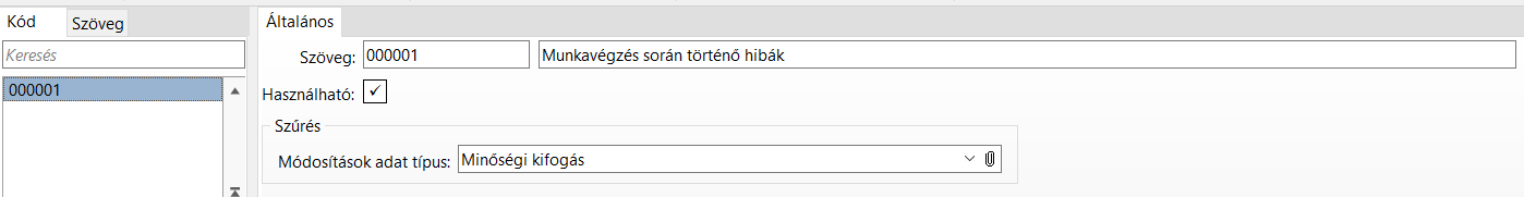 Ezt követően a Módosítás szöveg funkcióban kell meghatároznunk, hogy milyen szövegek közül választhassunk meghatározott Módosítás adat típus választása esetén:
