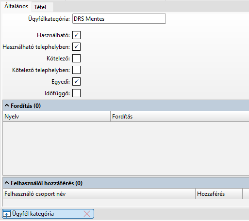 Az új ügyfél kategória neve lehet tetszőleges, de a használható és az egyedi jelöléseket be kell állítani, hogy funkció megfelelő működéséhez.