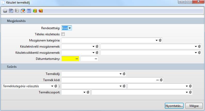A listához mindenképp meg kell határozni a készletet növelő (nyitás, beszerzés, bevételezés) és készletet csökkentő (értékesítés, kiadás) mozgásnem kategóriát.