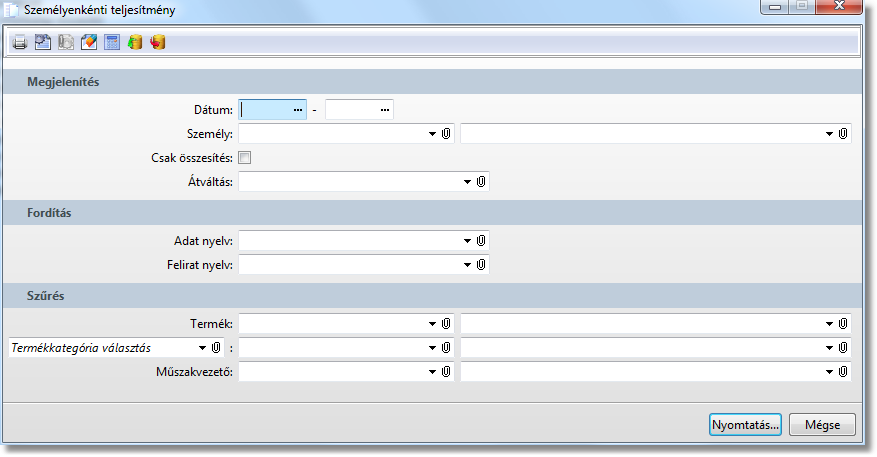 Funkció elérése menüszerkesztéskor: Termelésirányítás / Személyenkénti teljesítmény