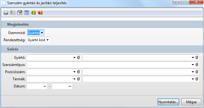 - Megrendelve: mikor rendelték meg a szerszám gyártását vagy javítását. Gyártás esetén az a dátum, amikor a szerszám állapota "Megrendelve", javítás esetén pedig "Javítás alatt" lett.