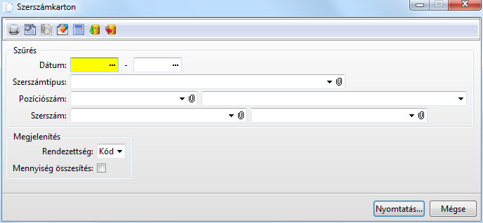 Funkció elérése menüszerkesztéskor: Termelésirányítás / Szerszámkarton lista