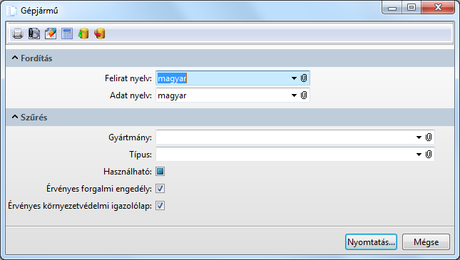 Funkció elérése menüszerkesztéskor: Útnyilvántartás / Gépjármű lista