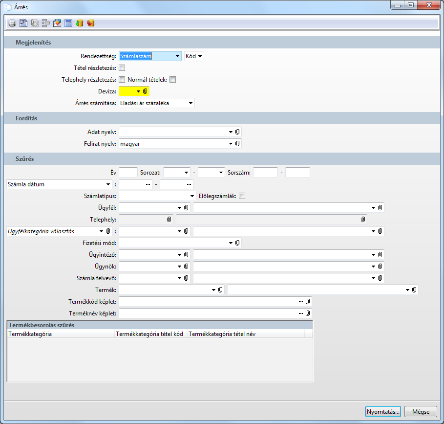 A funkció segítségével az értékesítéseink során alkalmazott árrés százalékot, árrés tömeget listázhatjuk / ellenőrizhetjük.