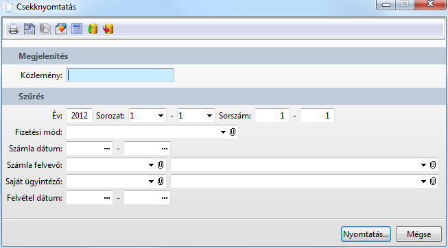 A funkció az elkészült számlákhoz csekkek nyomtatására szolgál.