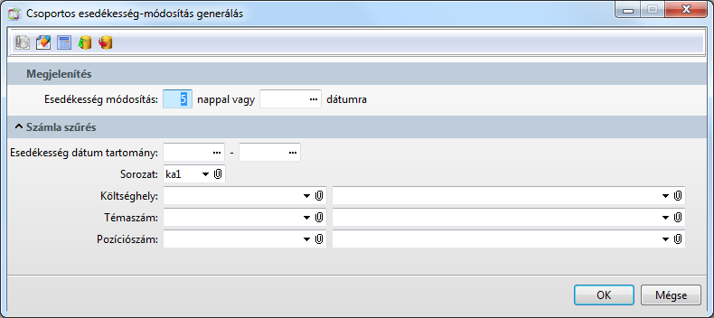 Funkció elérése menüszerkesztéskor: Vevőanalitika / Szállítóanalitika / Csoportos esedékesség-módosítás generálás