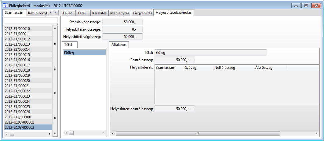 Navigáció: Pénzügy > Vevő > Funkciók > Előlegbekérő