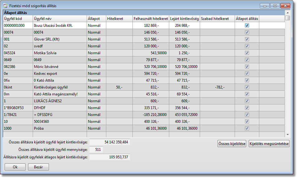 Amennyiben a leválogatatott ügyfél fizetési módját mégsem szeretnék szigorítani, itt még lehetőséget biztosít a program az egyes ügyfelek törlésére.