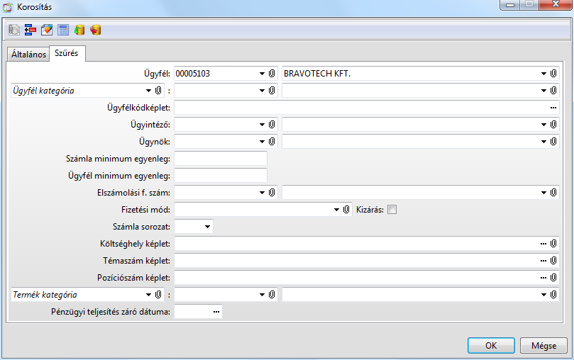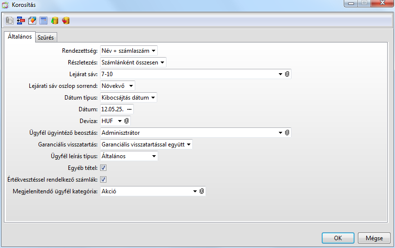 Funkció elérése menüszerkesztéskor: Vevőanalitika / Szállítóanalitika / Korosítás
