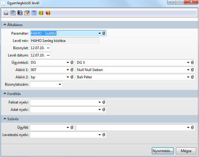 A funkció különböző szituációkban – a cég tartozáskezelési stratégiájának megfelelőn – küldendő egyenlegközlő levelek nyomtatására szolgál.