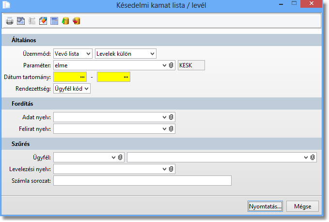 A generált késedelmi kamatokat ki lehet nyomtatni.