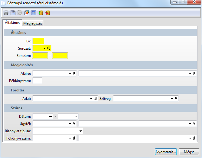 A pénzügyi rendező tétel paraméter neve, az alapértelmezés: Normál. |