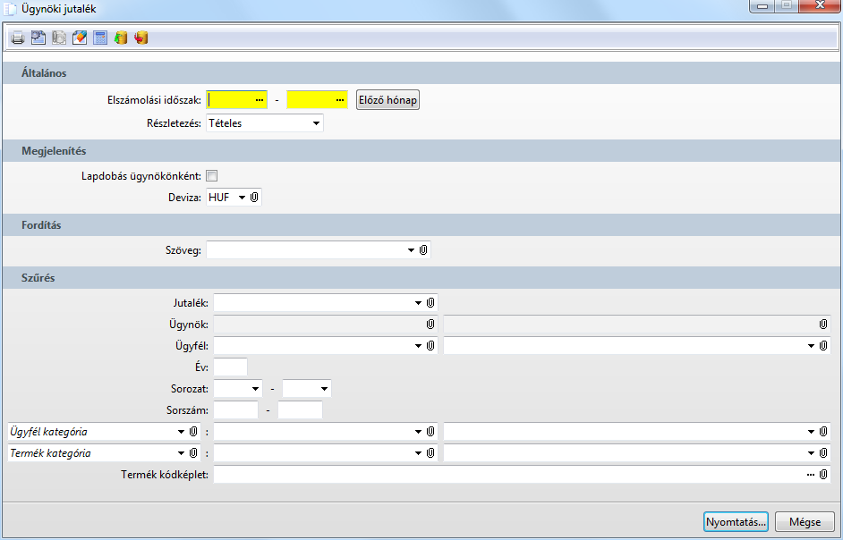 A funkció a megadott időtartományban az ügynöki jutalékok meghatározására szolgál a számla, vagy a számlához kapcsolt teljesítés alapján a jutalék törzsben rögzített szabályok szerint.