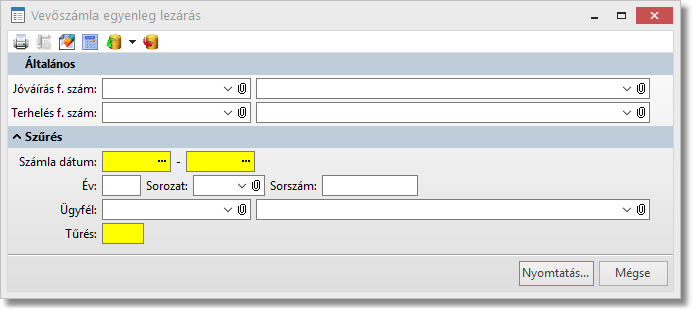 A párbeszédablakon megadott kritériumoknak megfelelő számlák nyitott egyenlegeit zárja le Egyéb jóváírás / Egyéb terhelés típusú kapcsolódó eseménnyel, mely a számla dátumára kerül felvételre (ha ez lezárt időszakra esik, akkor a lezárást követő első napra).
