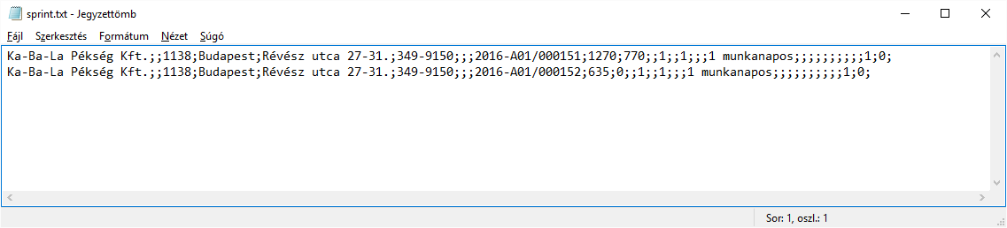 A funkció segítségével csv fájl generálhatunk a Sprinter cég programja felé.