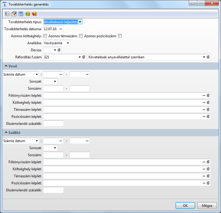 A funkcióval a továbbterheléseket generálhatunk a vevő- és szállítószámlák szűrt csoportjára.