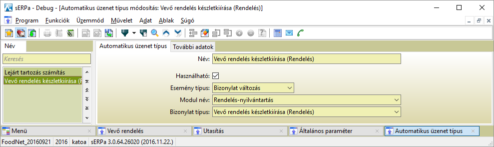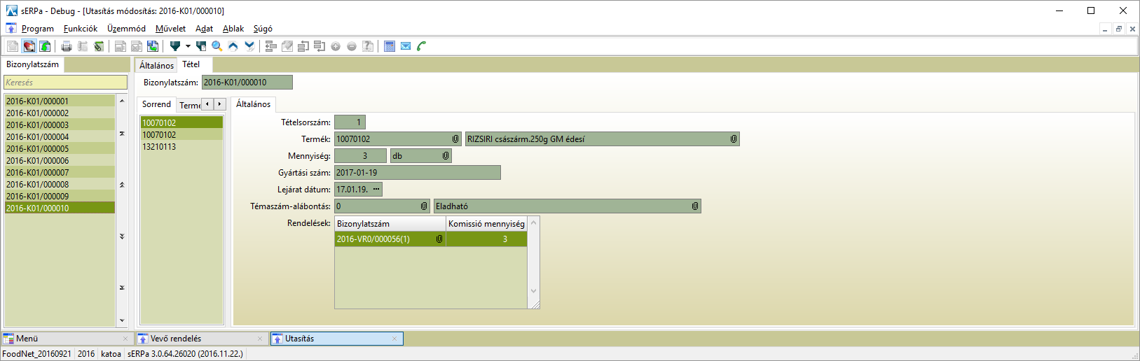 A vevőrendeléseket a Vevőrendelés generálás funkcióval ajánlott felvenni, mert azt itt felvett rendelés mentése hatására történik a Komissió Utasítás generálás automatikus üzenetben.