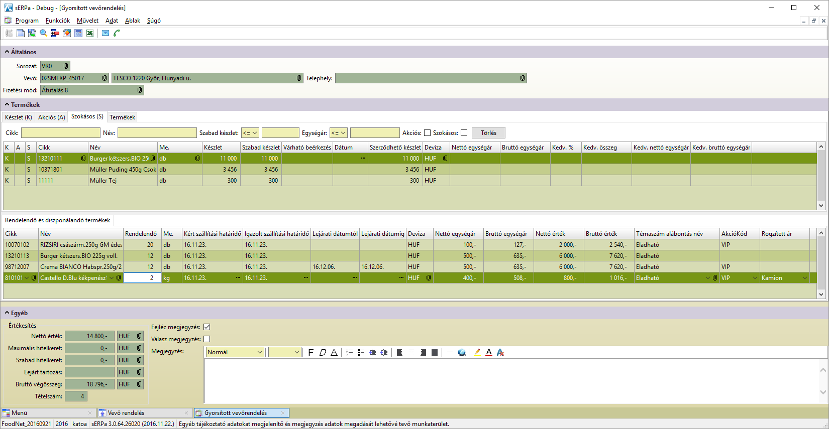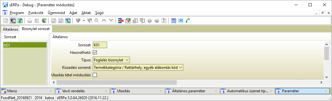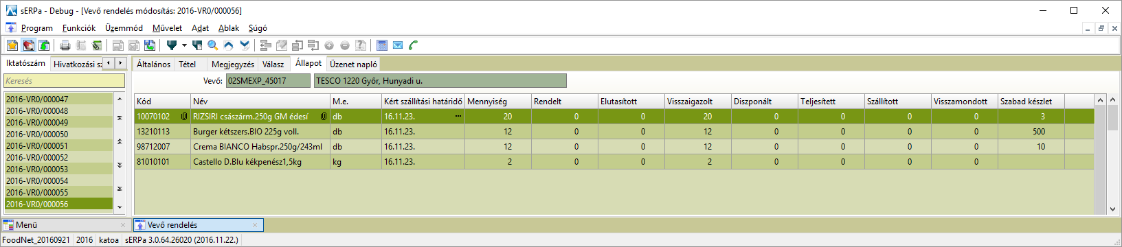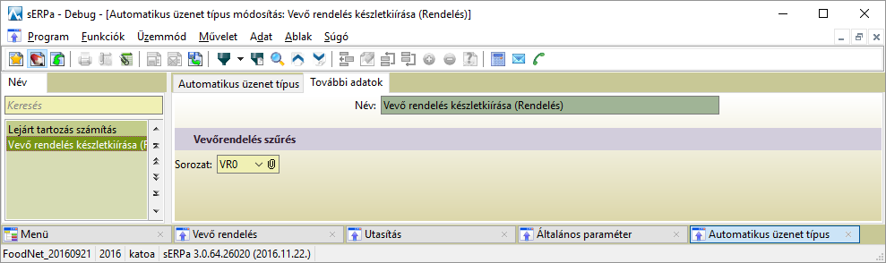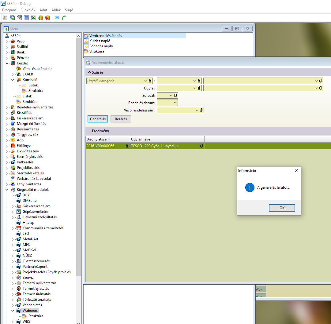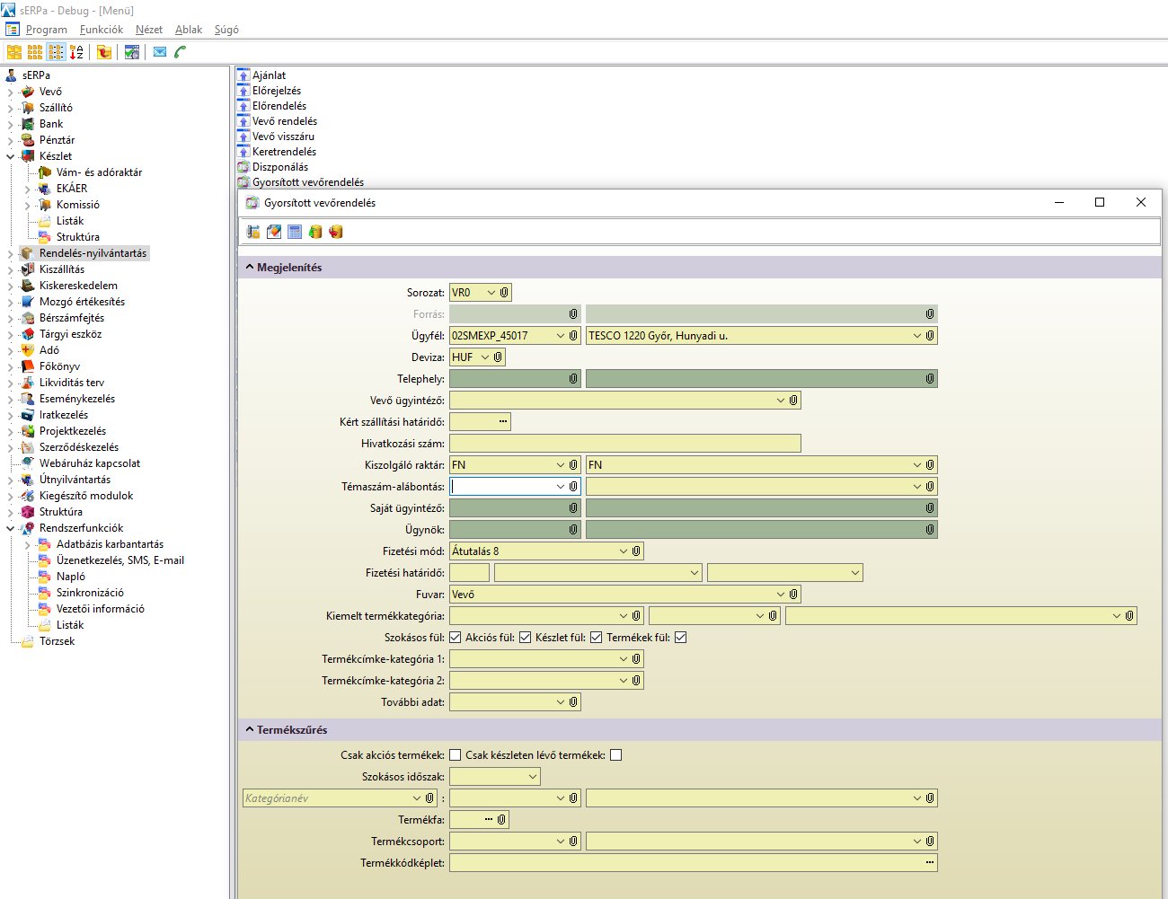1.Ha egy rendelés a napi átküldés után kerül be a sERPa-ba, akkor az átküldhetjük szintén a Vevőrendelés átadás funkcióval, (pl a szűrésbe megadjuk azt az egy rendelést, de szűrés nélkül is csak aznapi új rendelések kerülnek átküldésre), de ebben az esetben célszerű jelezni a WBR-nek, mert akkor a másik oldalt a kiszedési hullámot át kell rendezni.