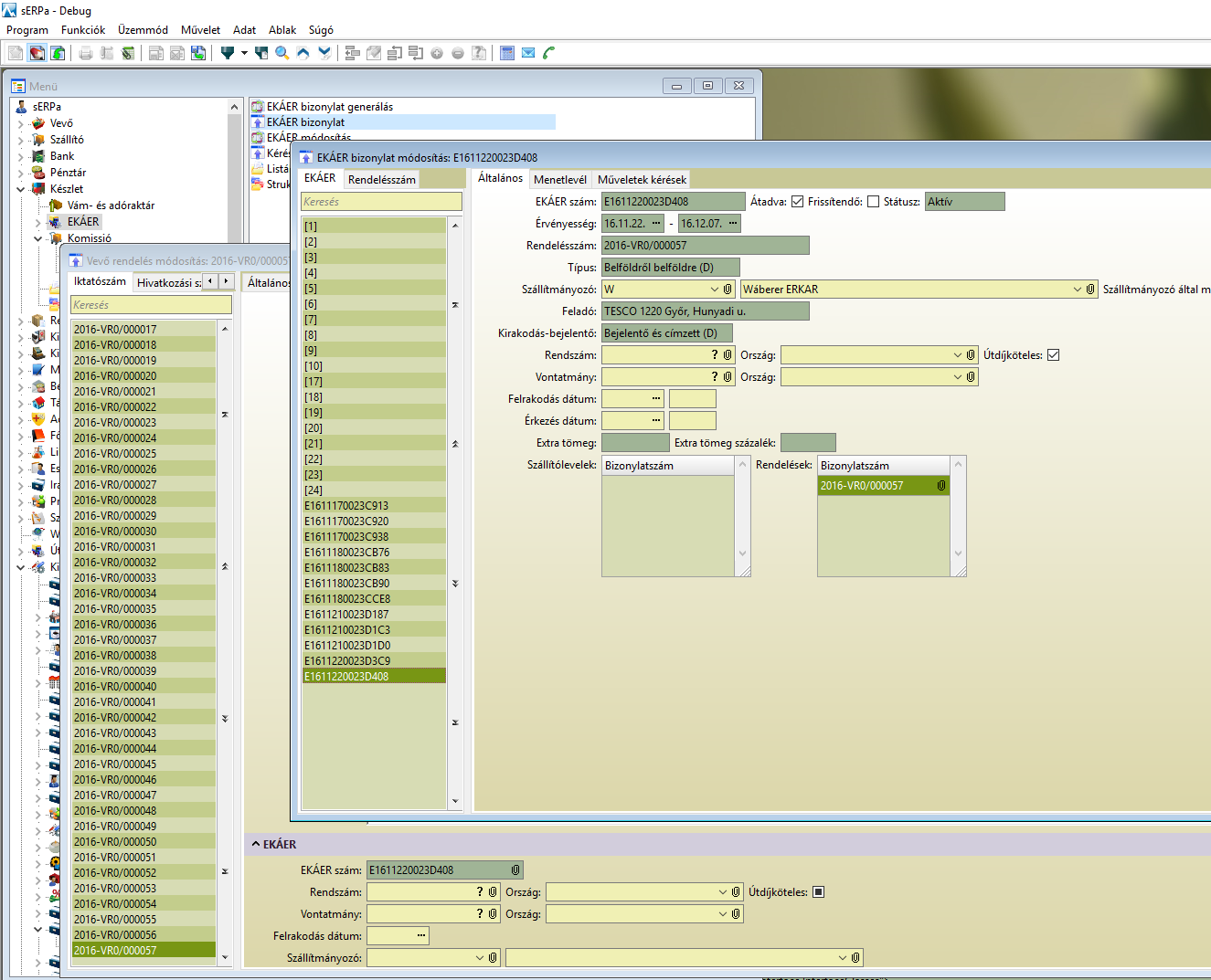 A szállítórendelések folyamatosan vehetjük fel, itt is visszaigazolt állapotba kell tenni (pl művelet segítségével), átadásra csak a visszaigazolt rendelések kerülnek.